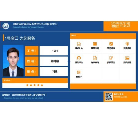 ● 顧客可對工作人員的服務態(tài)度、服務效率、業(yè)務水平、是否在崗等多方面進行自主評價,有效監(jiān)督工作人員的服務質(zhì)量;